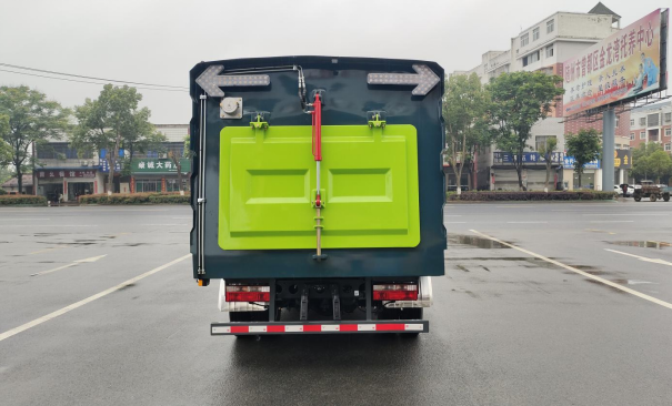 4、卸料作业时,垃圾箱周围严禁站人,需要翻起垃圾箱进行保养或检修时,应用支撑杆可靠地支撑。严禁无保护支撑在垃圾箱下工作。
